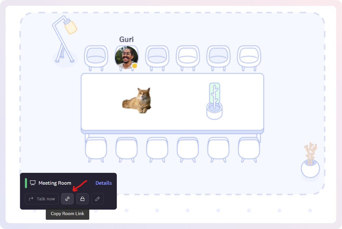 Share your Meeting Room link to invite teammates or external guests: